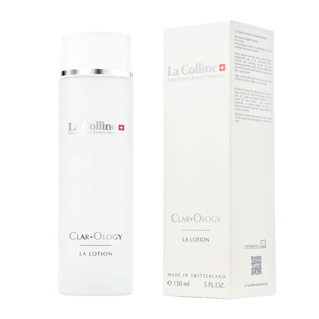 Clar•Ology La Lotion initiates the youth-enhancing ritual. Its light, fresh texture gently exfoliates your skin, thanks to Succinic Acid. Scutellaria Alpina, a rare Swiss Glacier Flower, preserves the skin’s natural barrier. Gently purified, your skin is flawless and even-toned.